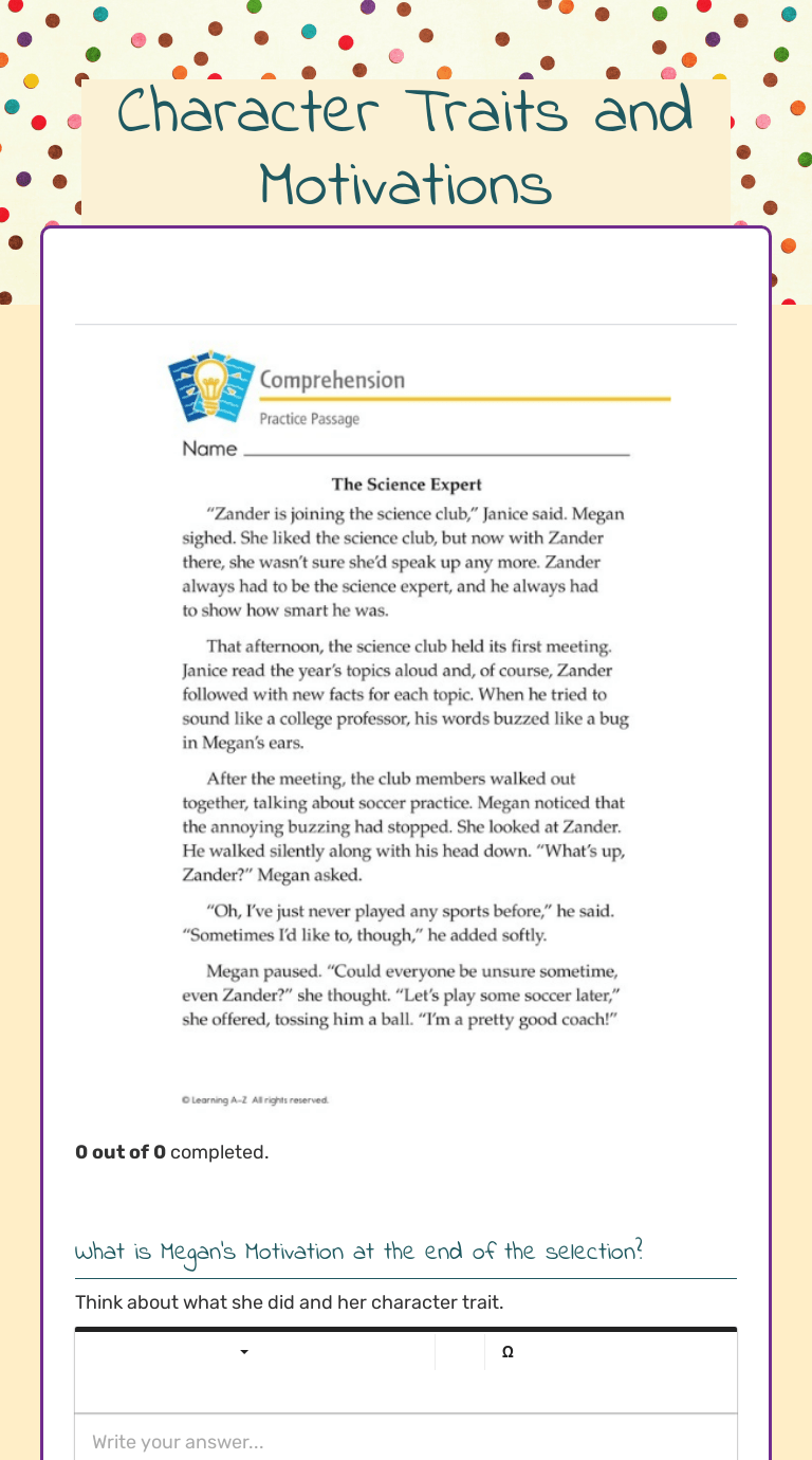 Students analyze one of shakespeare's protagonists/antagonists and present a monologue or video to demonstrate a . Free, printable character traits worksheets to improve reading comprehension skills. Direct students' attention to the character motivations anchor chart. Character traits, motivations, and actions. Character motivation and analysis questions worksheet directions:follow the google slide presentation about the story and complete the activities on this .